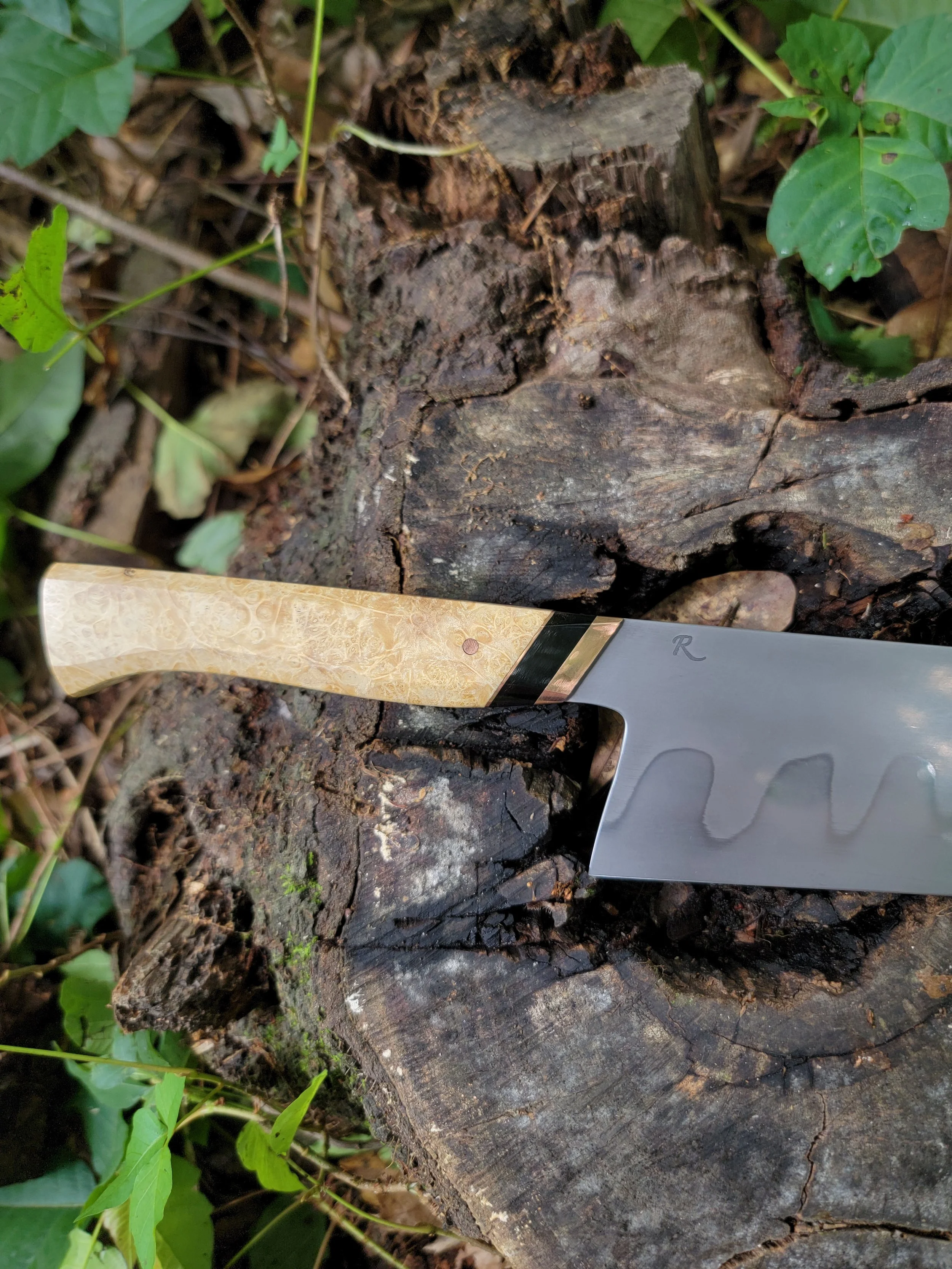 The difference between the Work Horse and Master line is the finish on the blade, work horse knives have a rougher finish and do not have a metal bolster. Choose from carbon or stainless steel chef knives, damascus steel chef knives, and chef knives with hamons. My chef knives excel in edge retention, weight and balance for effortless control. All knives come with a complimentary carry case.